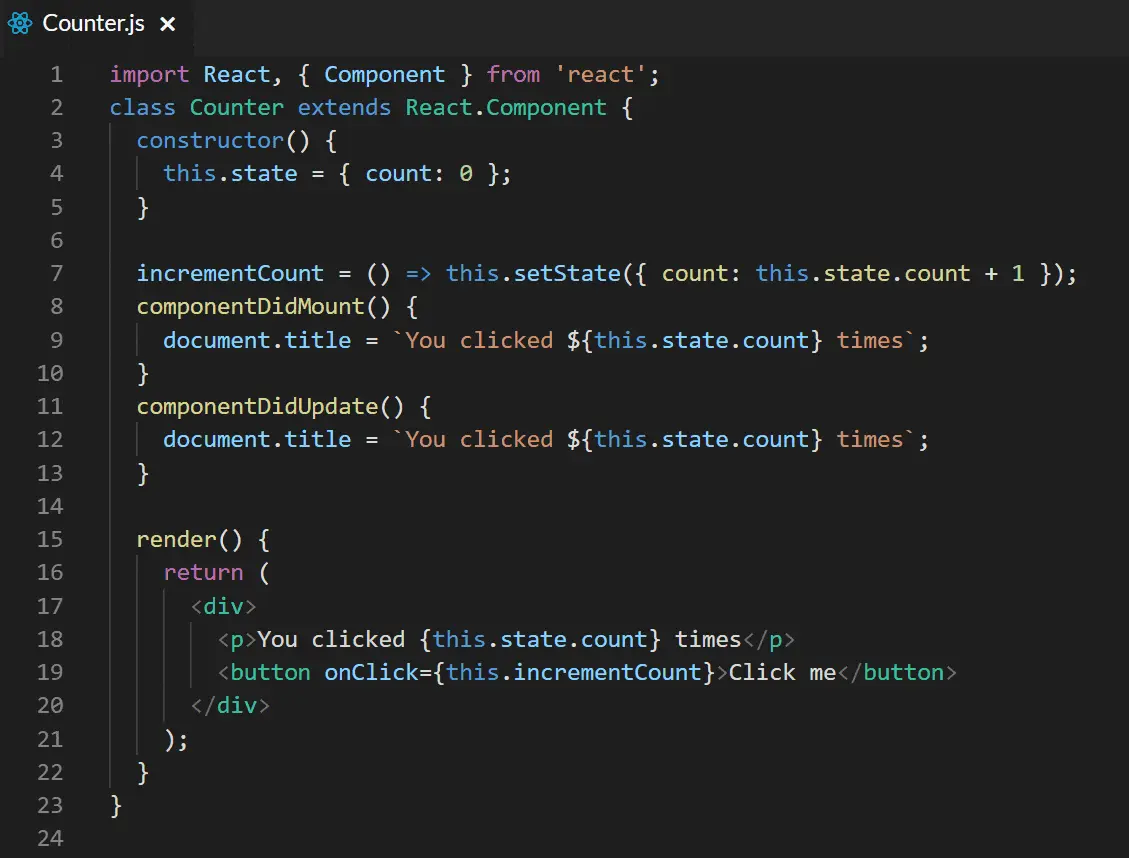 componentDidMount() { document.title = `You clicked ${this.state.count} times`; }