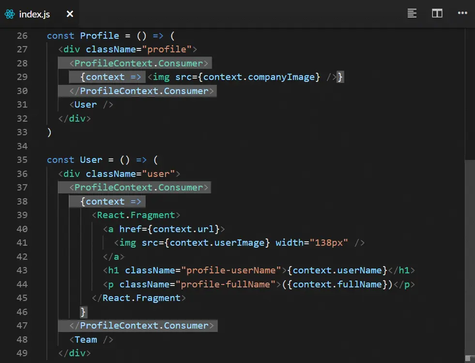 render()调用,这在函数组件中是不必要的 - 在第22、23、26和27行我们提到了这一点。而