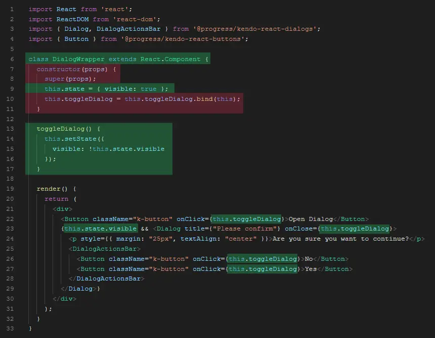 因此,让我们开始重构KendoReact演示,演示如何使用我们的KendoReact对话框。