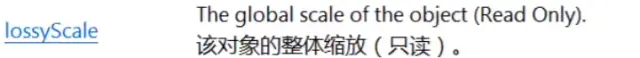 ③ lossyScale //物体与本身模型的缩放比例(只读)