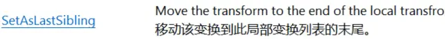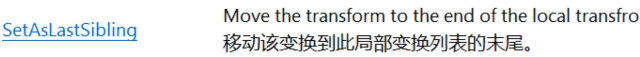 SetSiblingIndex(int);15. 将物体变换移动到兄弟列表最前面,做长子