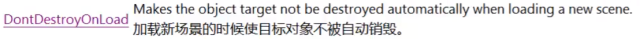Destroy(gameObject,5); //5秒后删除对象② 转换场景不删除对象