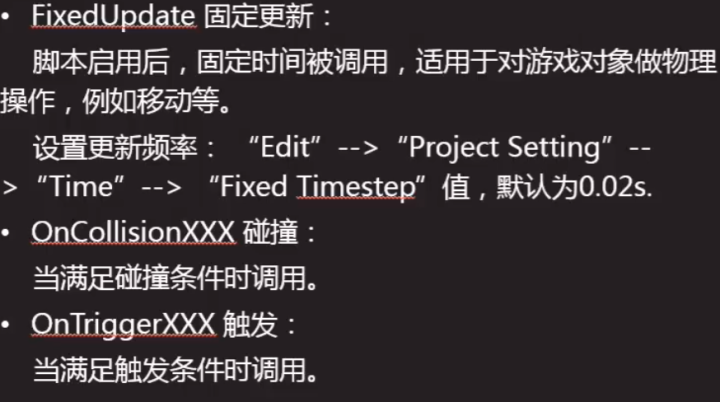 固定更新,适合对物体做物理操作,不会受到渲染影响.