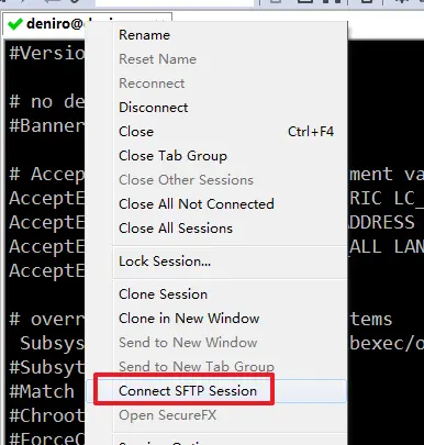 在 secure CRT 中,右击已连接的 ssh 标签页,选择 Connect SFTP Session:
