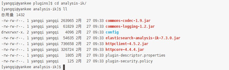 [yangqi@yankee elasticsearch-7.3.0]$ ./bin/elasticsearch-plugin install https://github.com/medcl/elasticsearch-analysis-ik/releases/download/v7.3.0/elasticsearch-analysis-ik-7.3.0.zip