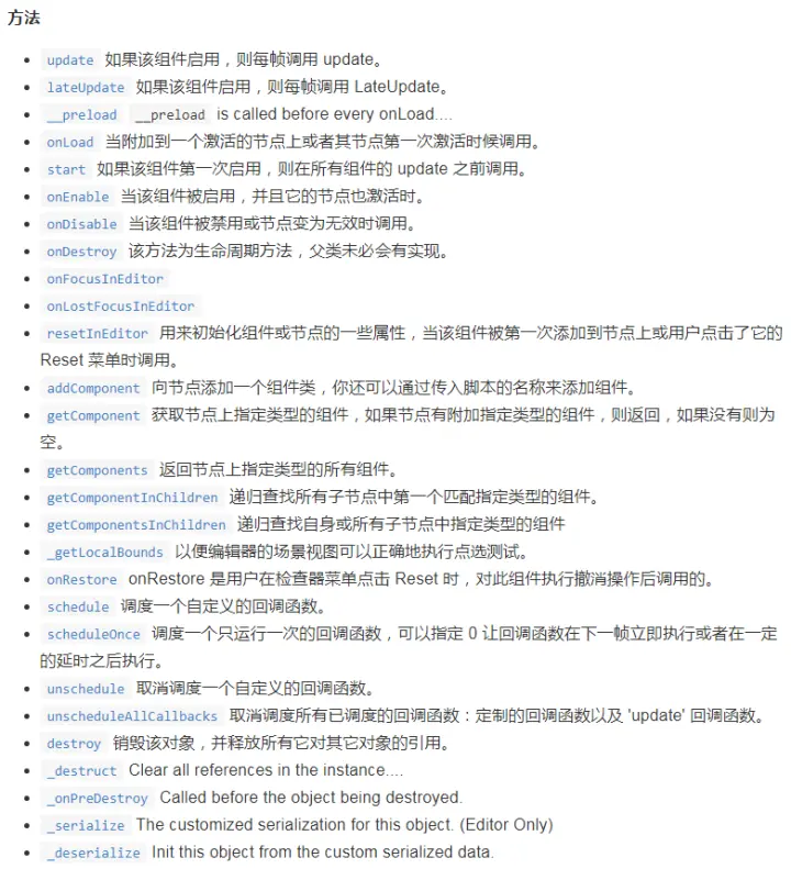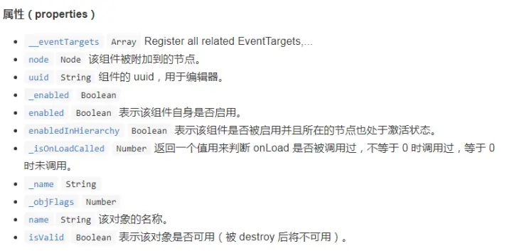 四. 脚本中的组件类对象的属性和方法 (很多组件的属性方法和node的相似)