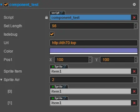 组件的属性会公开到cocos属性编辑器中,方便非程序猿调试