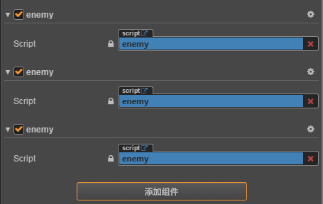 在另一个组件的另一个脚本中,我想传递这个自定义的组件(他其实是 被我写的enemy实例化的组件,enemy类的实例)