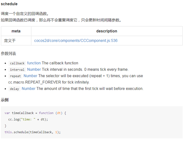 schedule(回调函数,隔多久,执行几次,调用后多久开始)