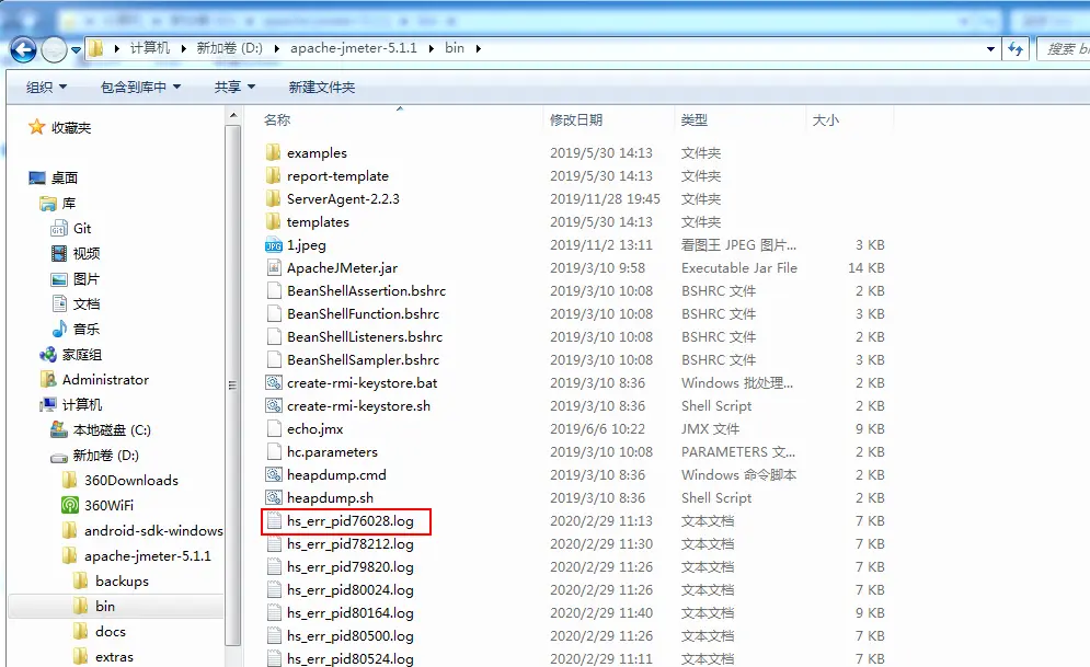 再启动jmeter时,出现“There is insufficient memory for the Java Runtime Environment to continue.”等内存不足的,无法启动,根据提示找到错误日志文件