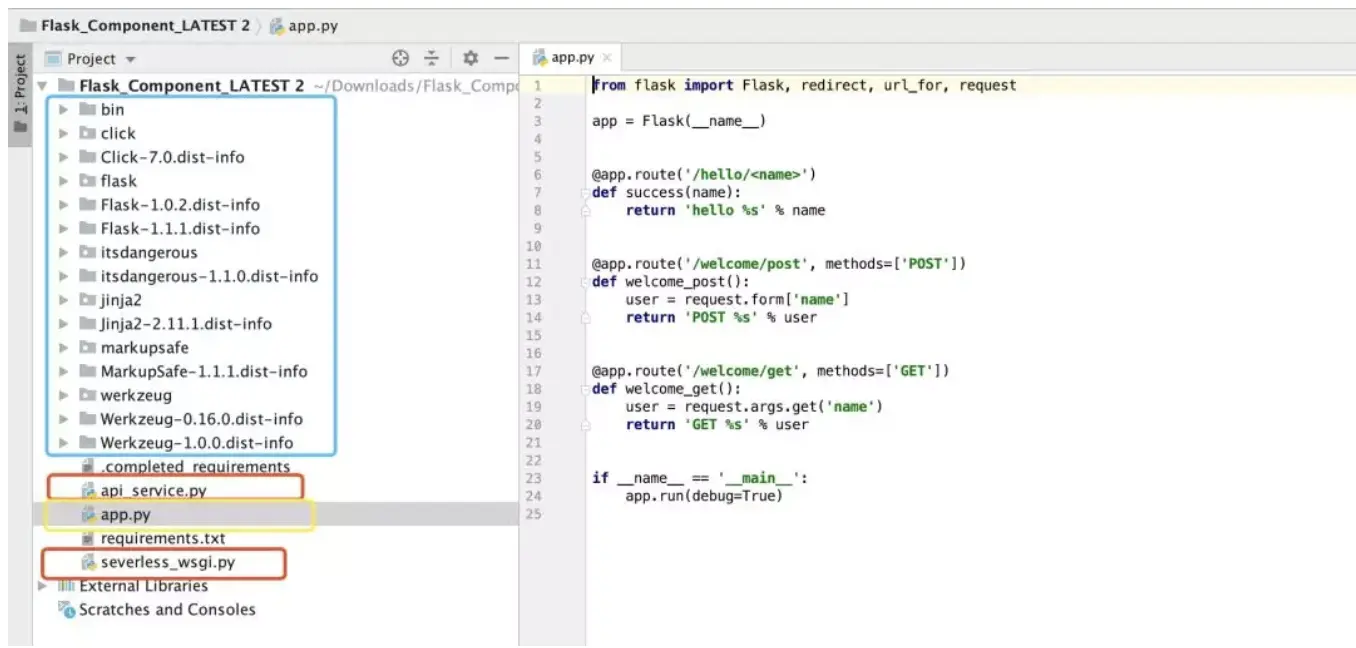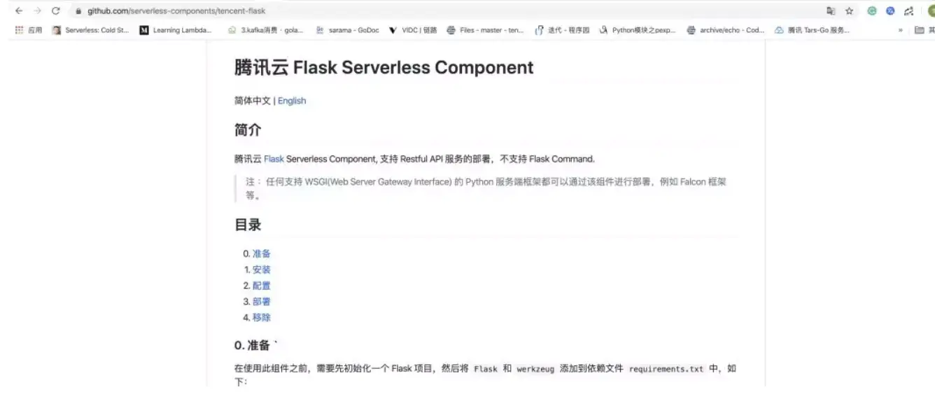 首先第一步,我们要知道其他的框架是怎么运行的,例如Flask等,我们先通过腾讯云的Flask-Component,按照他的说明部署一下: