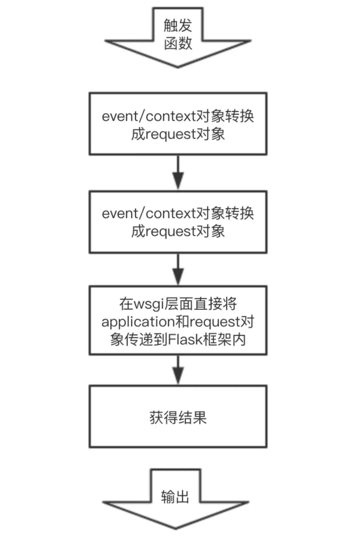 并且按照API网关的响应集成的格式,将结果返回。 此时此刻,各位看官可能有点想法了,貌似有一丢丢灵感出现了,那么我们不妨看一下Flask/Django这些框架的实现原理: