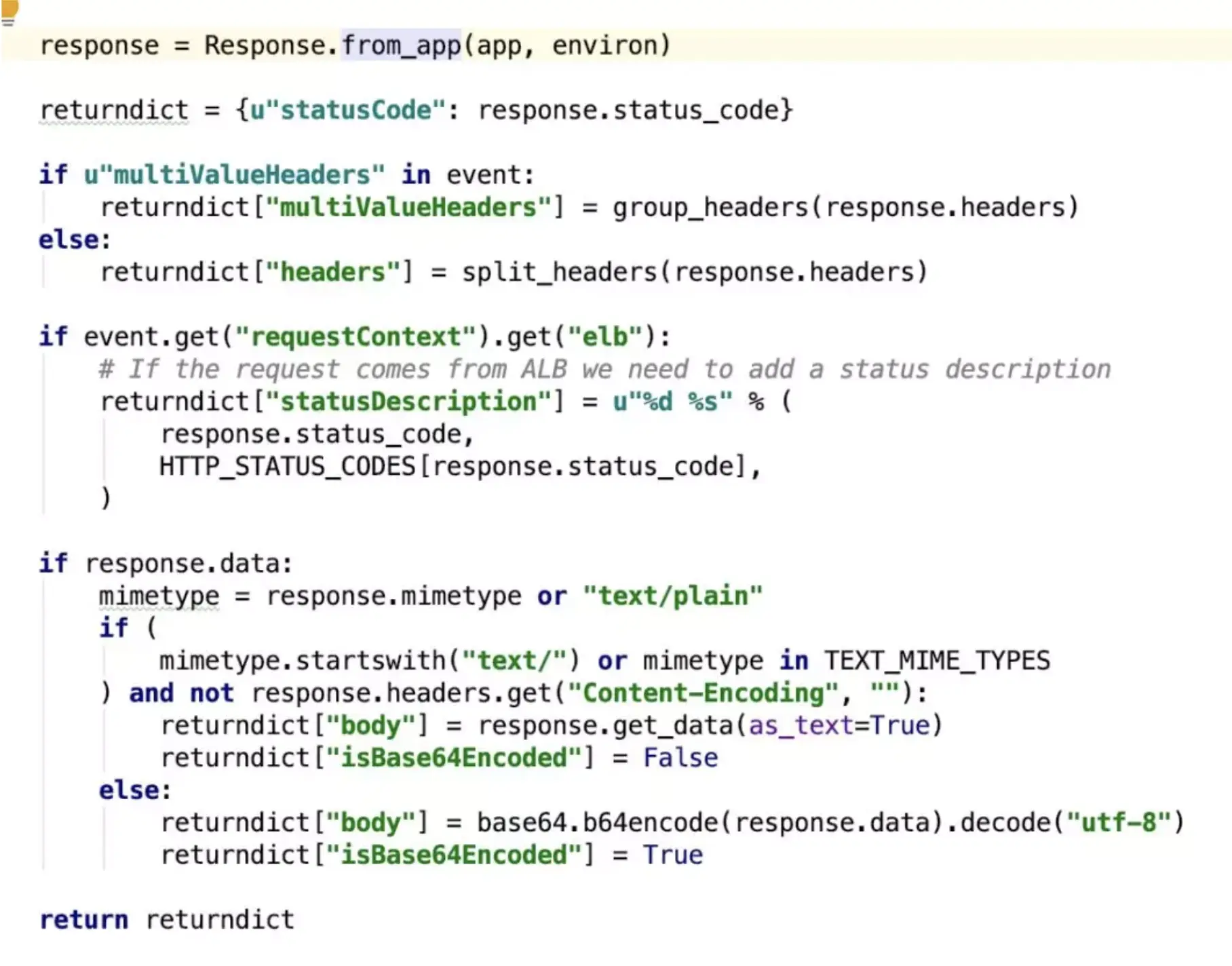 returndict["isBase64Encoded"] = True