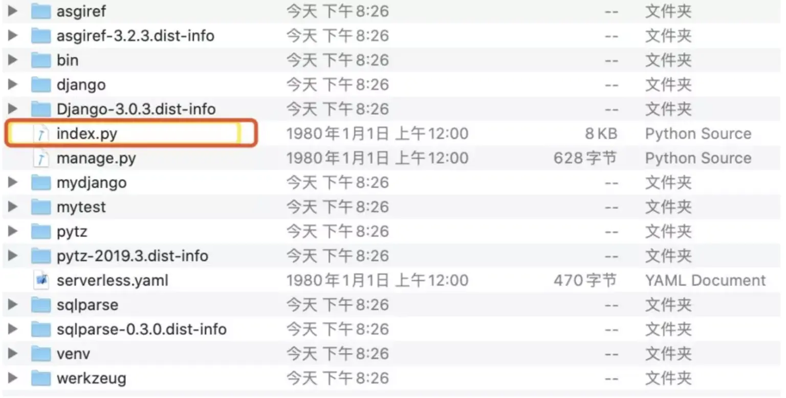 建立好Django项目,直接增加index.py: