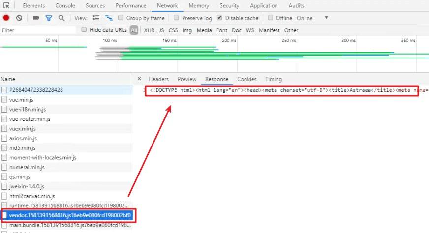 错误的情况下,js文档的响应信息如图,变成了text/html类型
