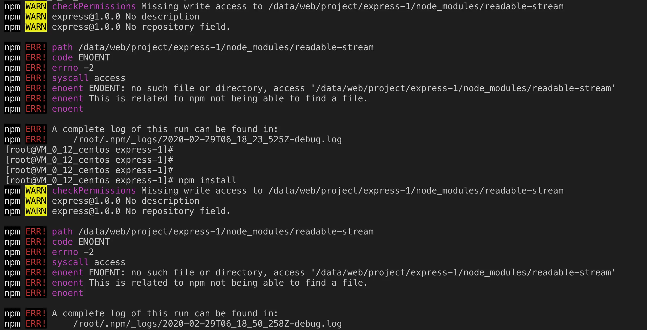 以上就是在centos系统下执行npm install所报的错误,由提示不能得出是因为下载Chromium失败导致。