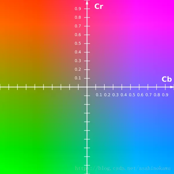 Y表示亮度,CbCr表示颜色。怎么表示颜色,可以看下面这幅坐标图: