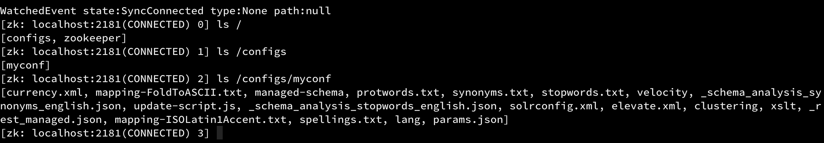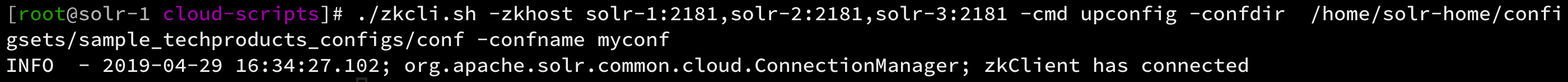 > ./zkcli.sh -zkhost solr-1:2181,solr-2:2181,solr-3:2181 -cmd upconfig -confdir /home/solr-home/new_core/conf -confname myconf