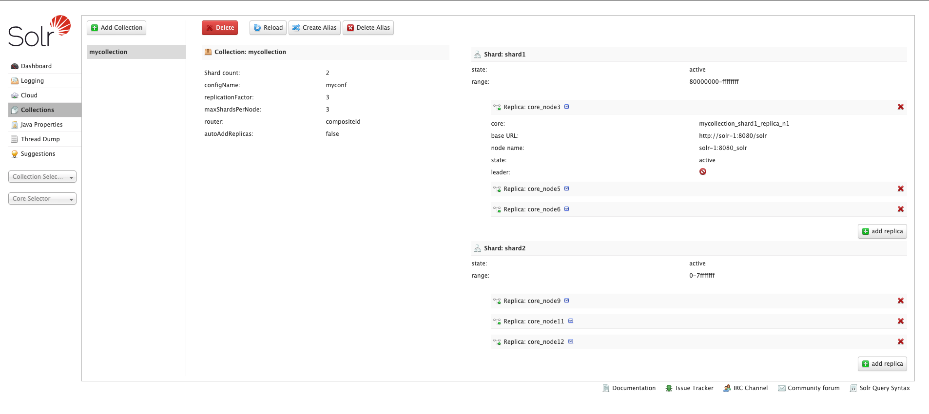 PS:集群下的Collection等同于单机的core