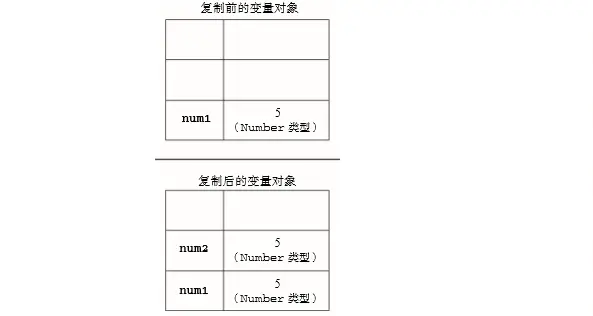 - 如果从一个变量向另一个变量复制基本类型的值,会在变量对象上创建一个新值,然后把该值复制 到为新变量分配的位置上