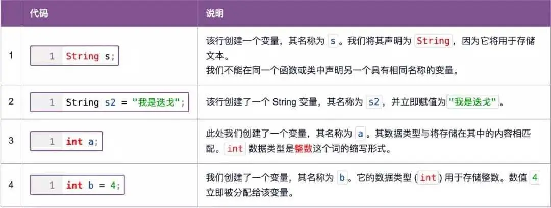 “当在代码中声明变量时,系统会为其分配一些尚未使用的内存。这通常是几个字节。声明变量时需要指明程序将存储在其中的信息类型:数字、文本或其他数据。为方便起见,为每个变量分配一个唯一的名称。”