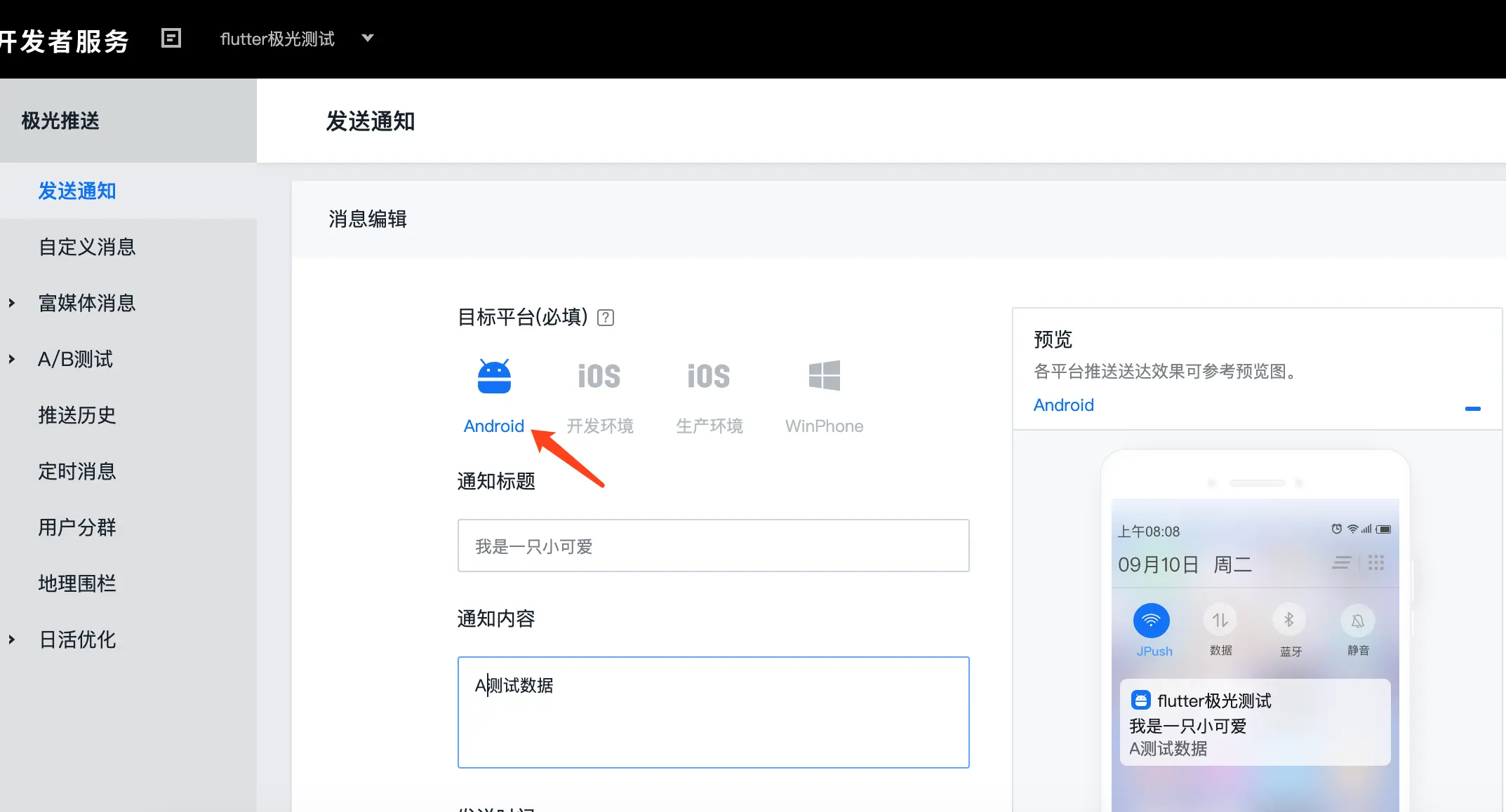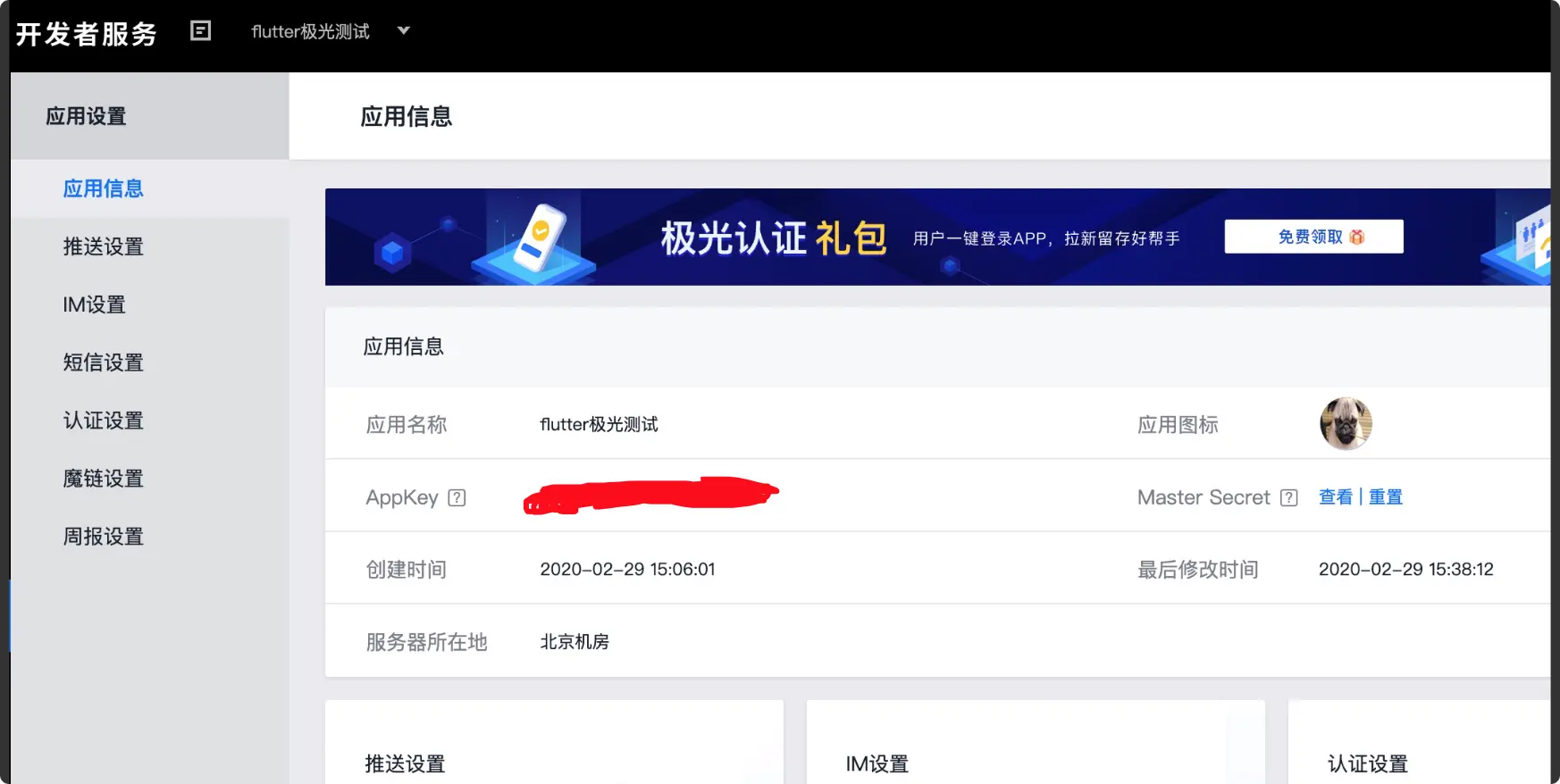 推送设置,配送推送的平台 Android,填入包名(注意这个填了之后不能改)