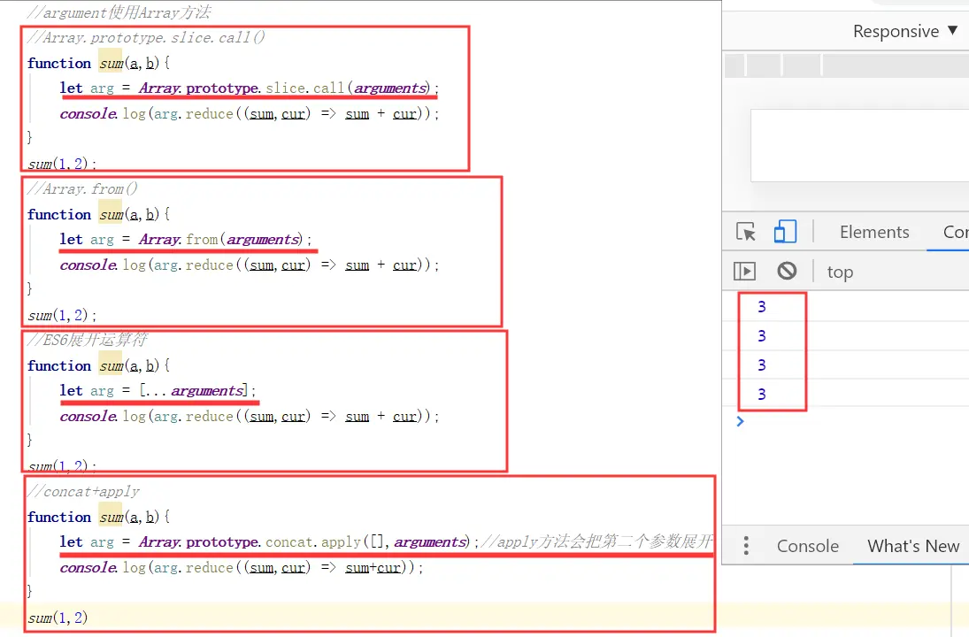 - argument对象并不属于Array实例,因为可以用方括号语法访问他的每一个元素;且本身并不可以调用数组方法。