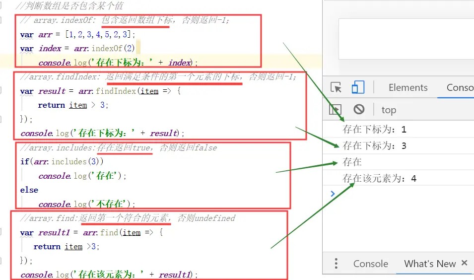 - array.indexOf:如果存在返回数组下标,不存在返回-1;