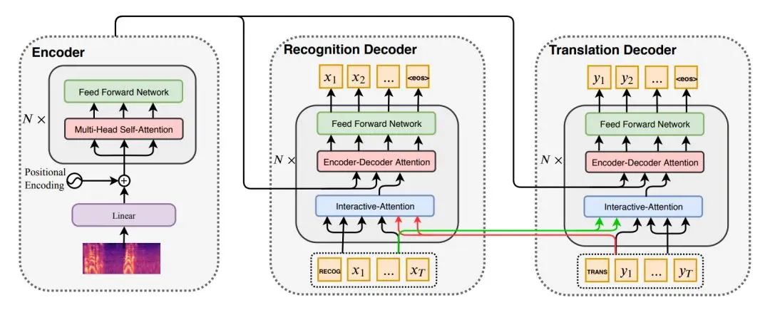 因此,论文作者们希望设计一种交互式的模型,让语音识别与语音翻译两个任务可以动态交互学习,实现知识的共享和传递。