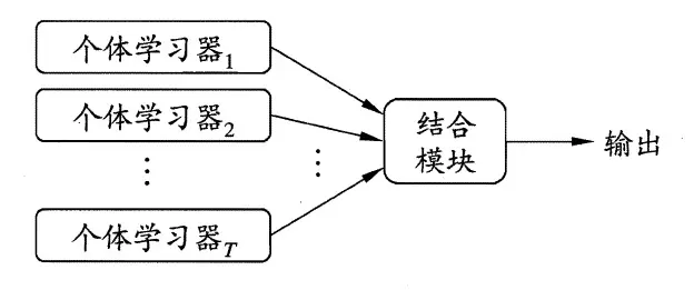 集成学习的基本结构为:先产生一组个体学习器,再使用某种策略将它们结合在一起。集成模型如下图所示: