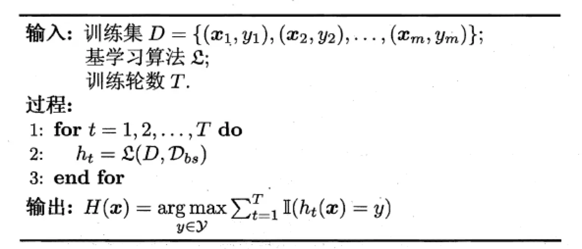 同质集成:个体学习器称为“基学习器”(base learner),对应的学习算法为“基学习算法”(base learning algorithm)。