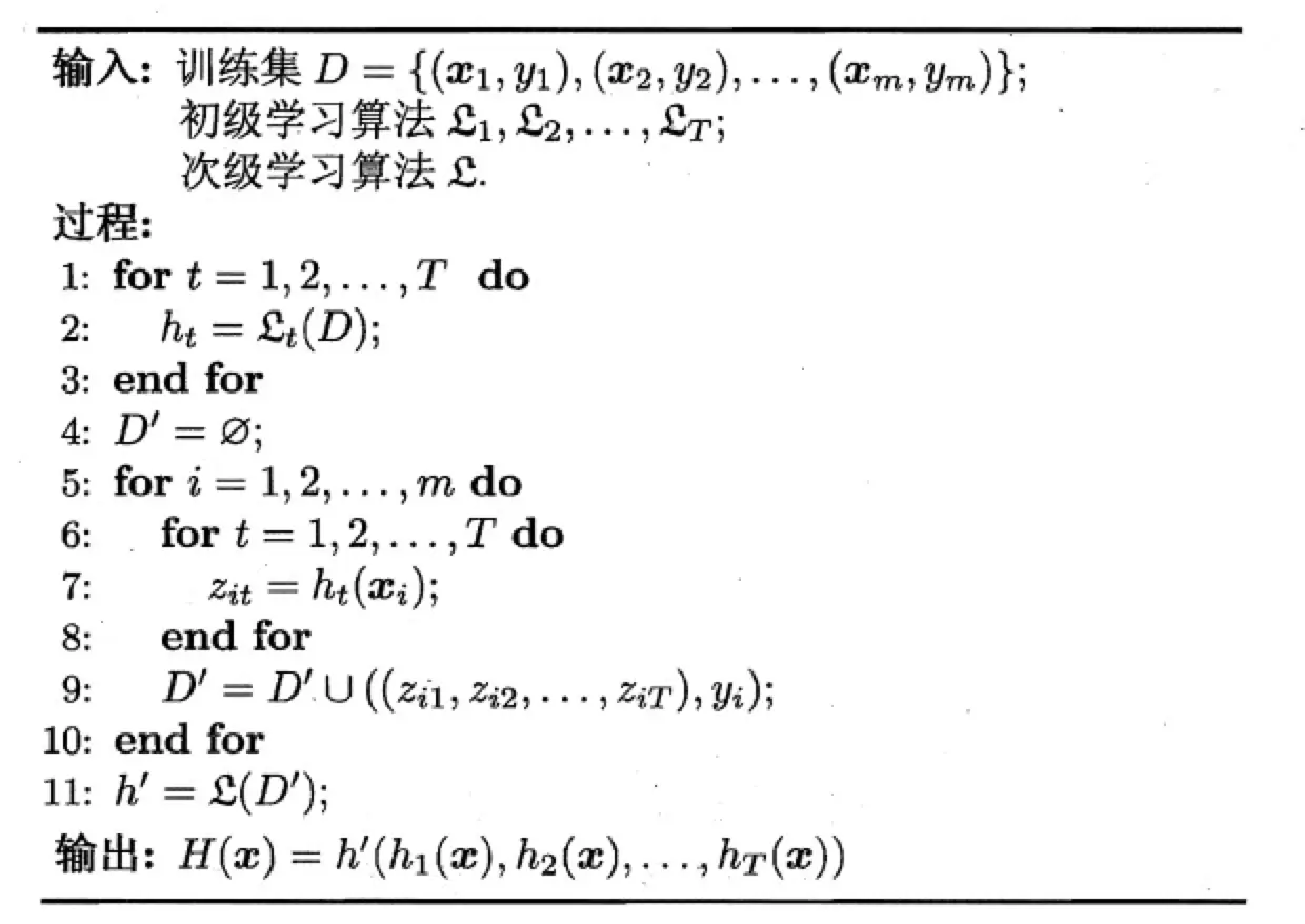 学习法是一种更高级的结合策略,即学习出一种“投票”的学习器,Stacking是学习法的典型代表。Stacking的基本思想是:首先训练出T个基学习器,对于一个样本它们会产生T个输出,将这T个基学习器的输出与该样本的真实标记作为新的样本,m个样本就会产生一个m*T的样本集,来训练一个新的“投票”学习器。投票学习器的输入属性与学习算法对Stacking集成的泛化性能有很大的影响,书中已经提到:投票学习器采用类概率作为输入属性,选用多响应线性回归(MLR)一般会产生较好的效果。