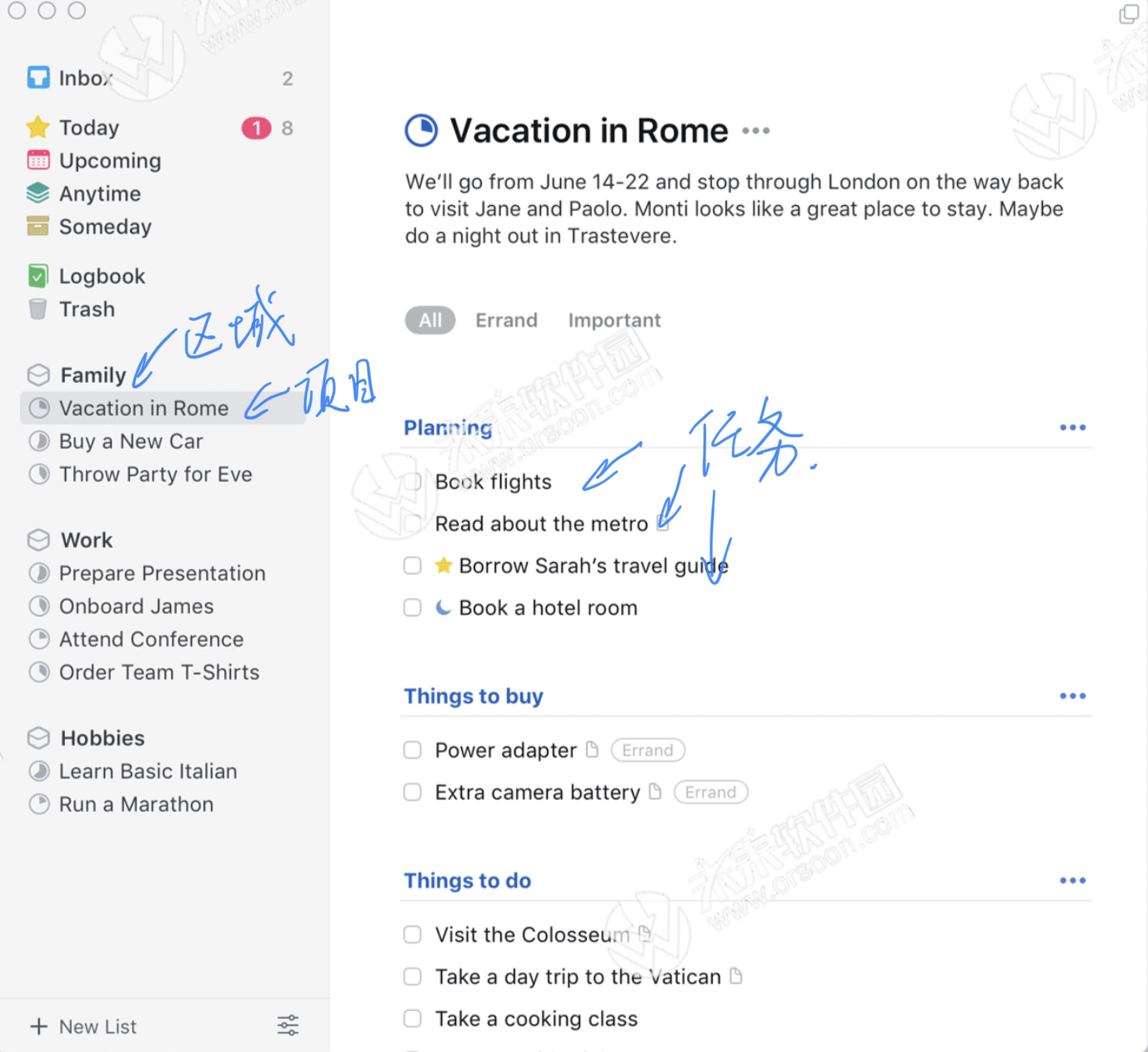 因为Things对未完成任务的时间分类是这的(已完成的任务在"日志簿"):