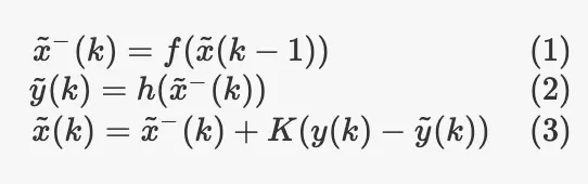 通常,我们在校正之前用apex -表示状态的估计,它来自于预测步骤。K是卡尔曼增益。这就是巧妙之处:K取决于我们对度量的信任程度,取决于我们对当前估计的信任程度(这取决于我们对模型的信任程度),根据这些信息,K“决定”预测的估计在多大程度上被测量纠正。如果我们的测量噪声与我们对来自预测步骤的估计的信任程度相比是“小”的,我们将使用测量对估计进行大的校正,如果相反,我们将对其进行最小程度的校正。