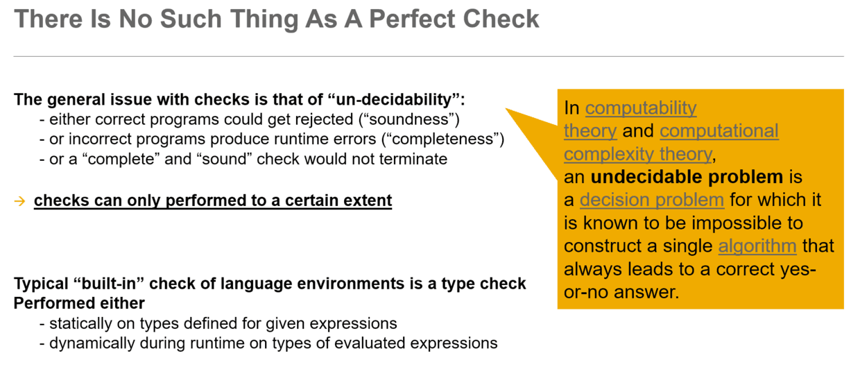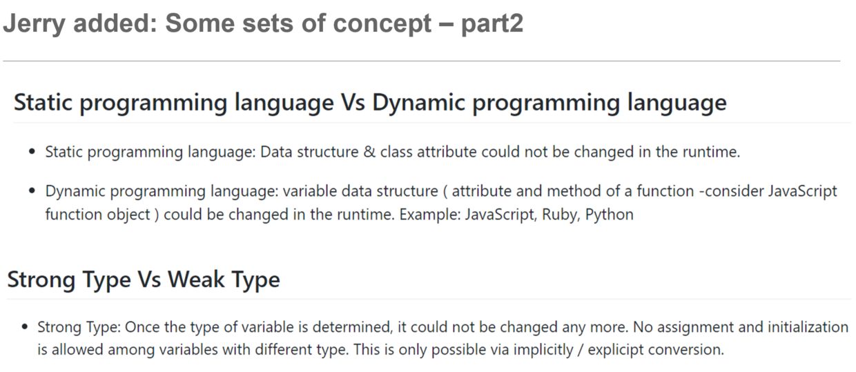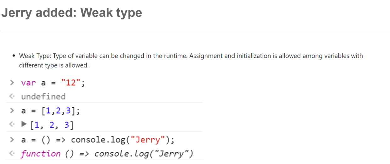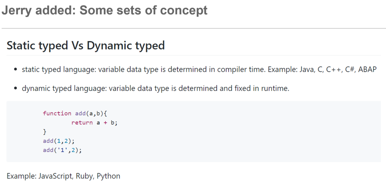 编程语言里函数方法类型检查的重要性 已注销 2020-03-01 107 阅读1分钟 importance of type checking and evaluation 静态类型检查和动态类型检查: 静态语言 vs 动态语言 强类型语言 vs 弱类型语言 显式类型转换 vs 隐式类型转换 弱类型的例子: 要获取更多Jerry的原创文章,请关注公众号"汪子熙":
