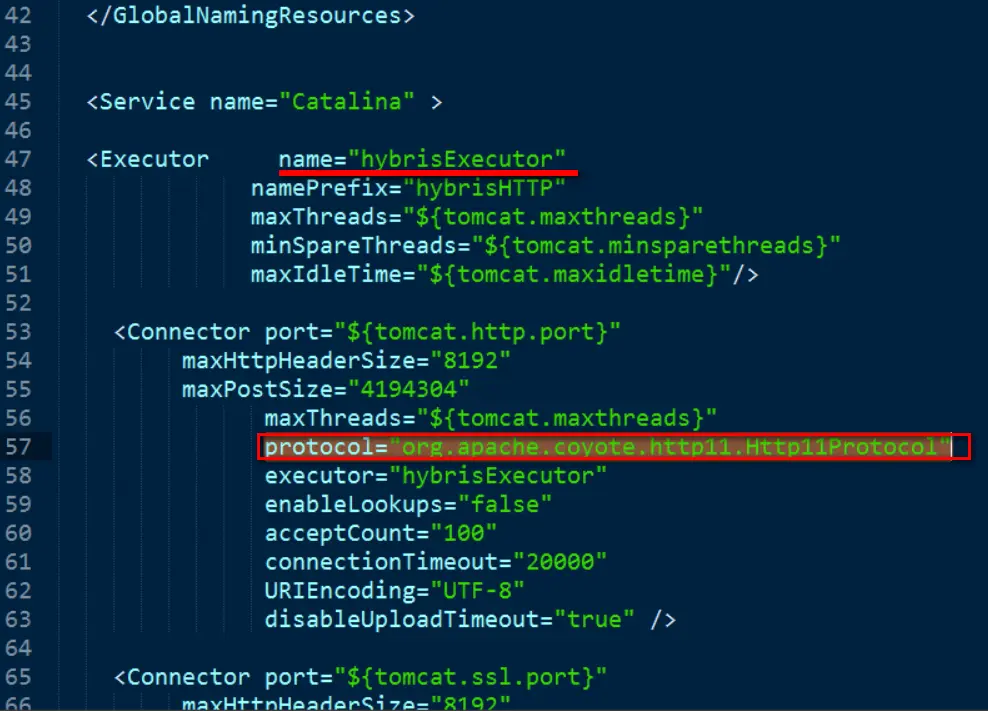 看Hybris log就知道了,Hybris服务end user请求通过一个线程池来完成,每个线程类似Netweaver的work process,用的仍是block IO.