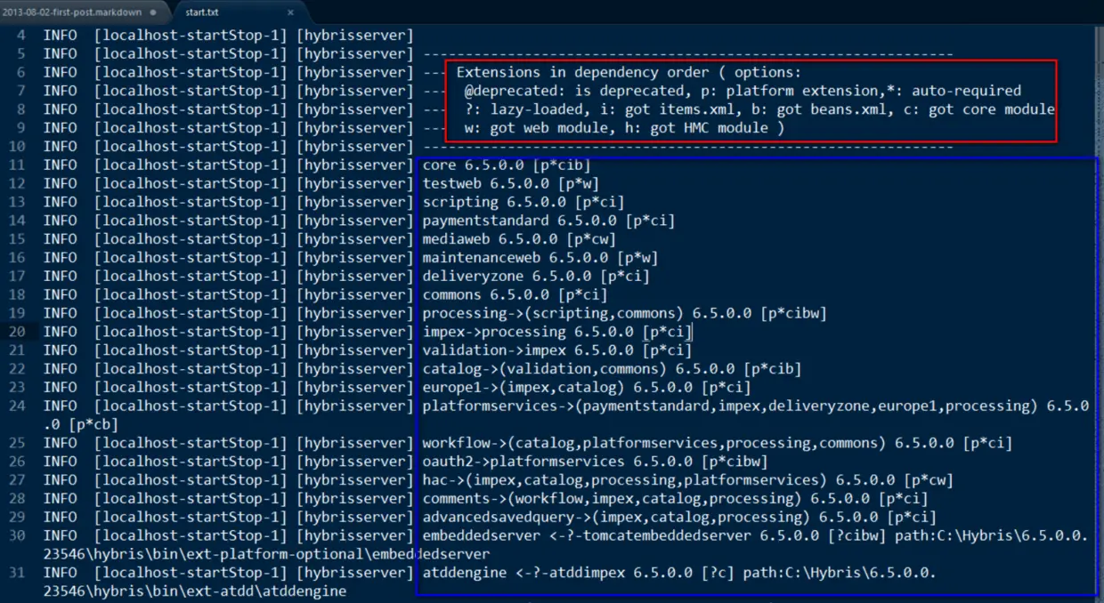 注意,即使是很多Hybris core的功能,也是以extension的方式实现的,这一点对于从ABAP转过来的developer一开始会特别confusing,因为在ABAP里extension一般意味着属于partner或者客户. 比如这个extension,是Hybris core的一部分.