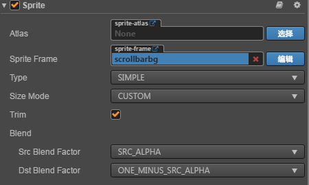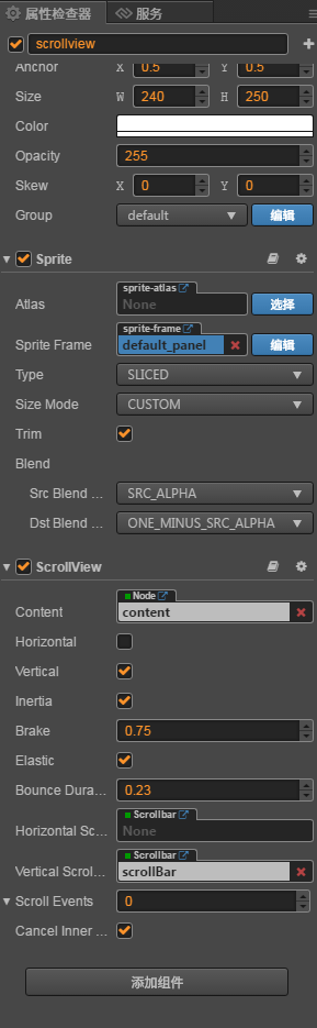 - 先看scrollView本身 //本身就挂了sprite做背景 还带一个scrollview组件