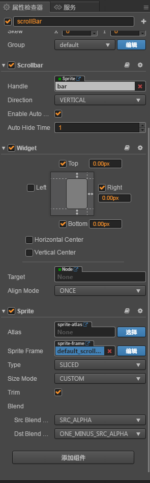 4. 为它添加一个scrollbar属性组件 将其变为scrollbar