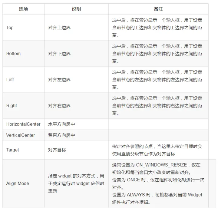 Widget (对齐挂件) 是一个很常用的 UI 布局组件。它能使当前节点自动对齐到父物体的任意位置,或者约束尺寸,让你的游戏可以方便地适配不同的分辨率。