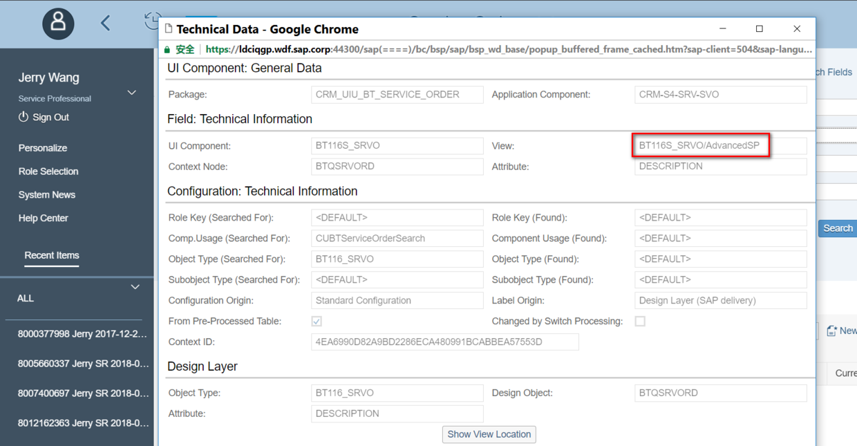 按F2就能看到页面的technical data, 就能找到当前页面是哪一个BSP component实现的: