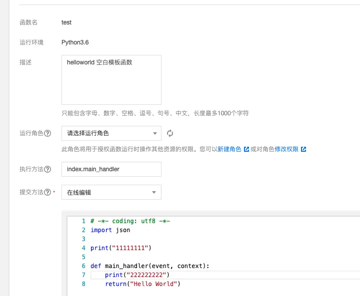 针对问题1,我们来做一个实验,我去腾讯云云函数创建一个test: