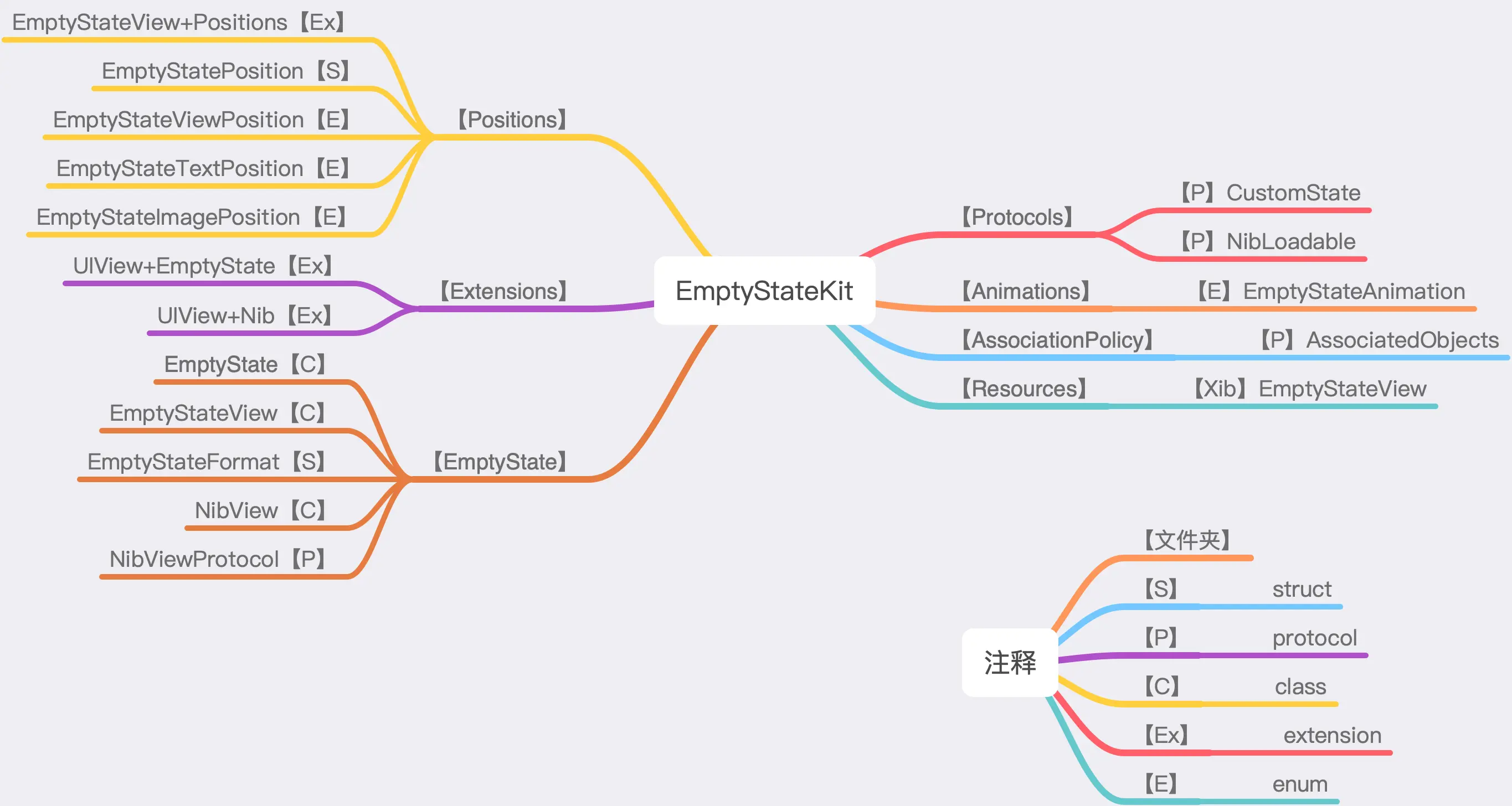 EmptyState是一个类,管理空白页的显示与隐藏。在这个类的实例创建的时候,就一并创建了EmptyStateView的实例,并且根据要显示空白页的视图(UITableView / UICollectionView)来显示,UITableView / UICollectionView里空白页都是直接设置为其背景视图。