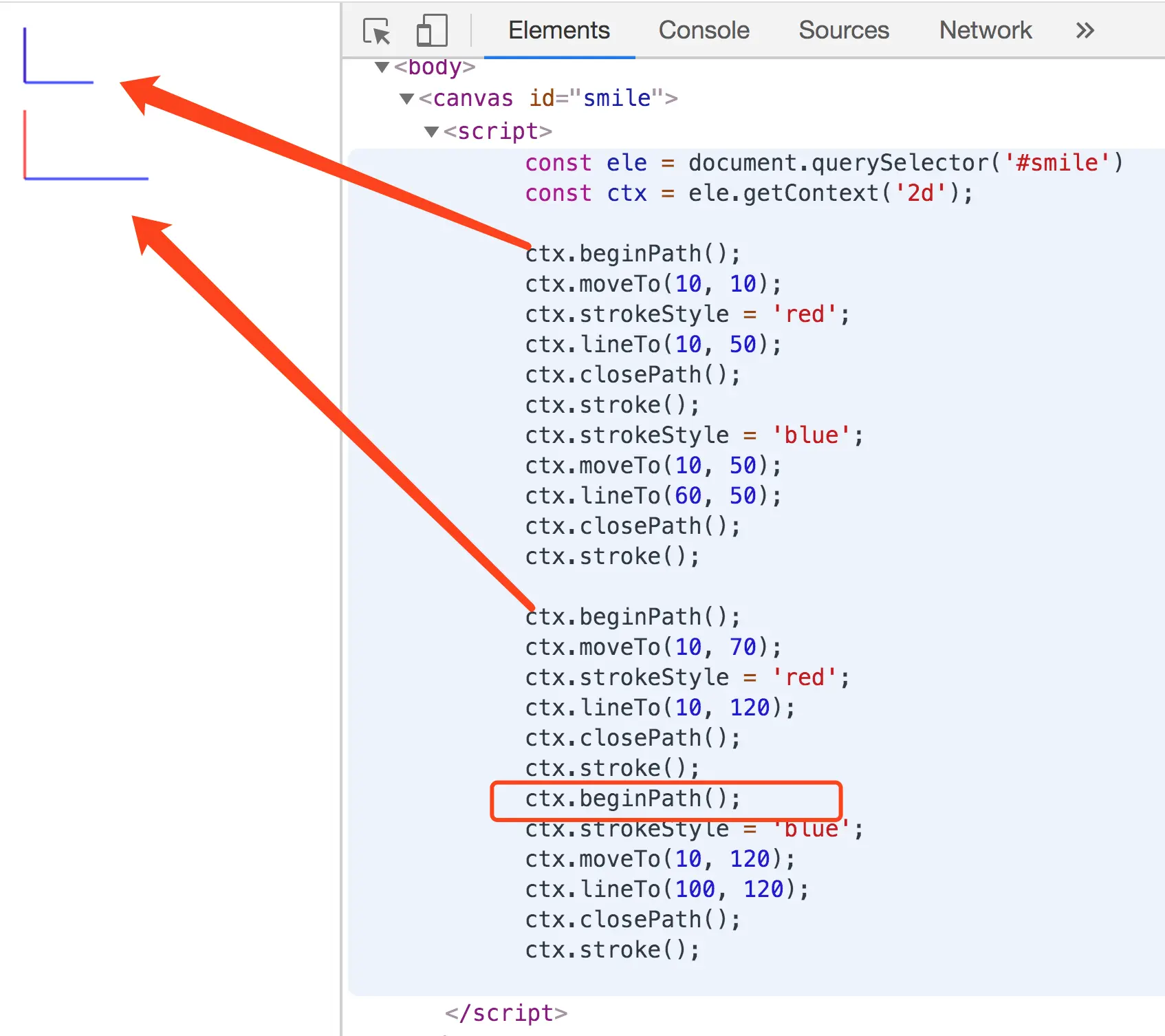 const ele = document.querySelector('#smile') const ctx = ele.getContext('2d');ctx.beginPath();