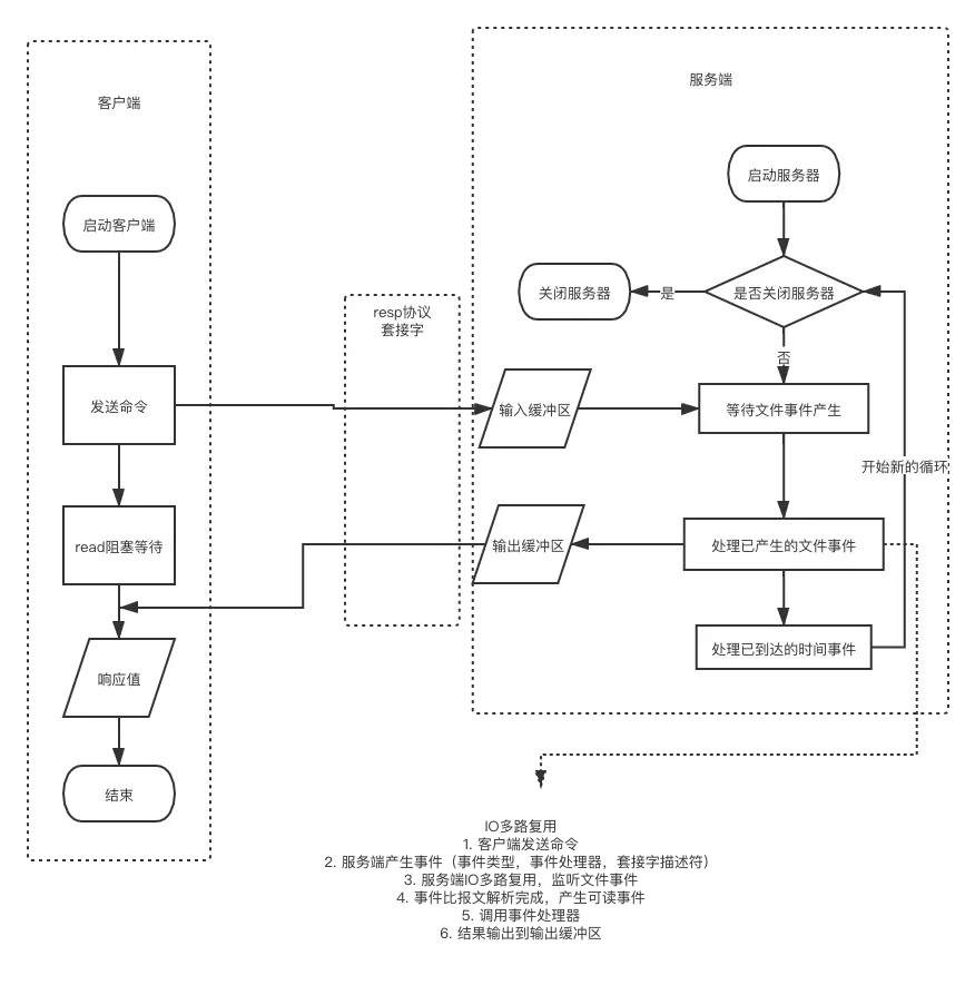 事件:多路复用的设计方案,包含文件事件和时间事件。 命令处理:连接过程、处理过程、响应过程