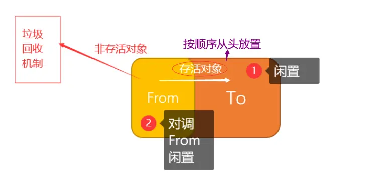 - 由于在堆中内存是连续分配的,这样做是为了防止内存碎片--- Scavenge算法。