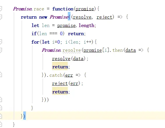 - 只要有一个promise执行完,直接resolve并停止执行;