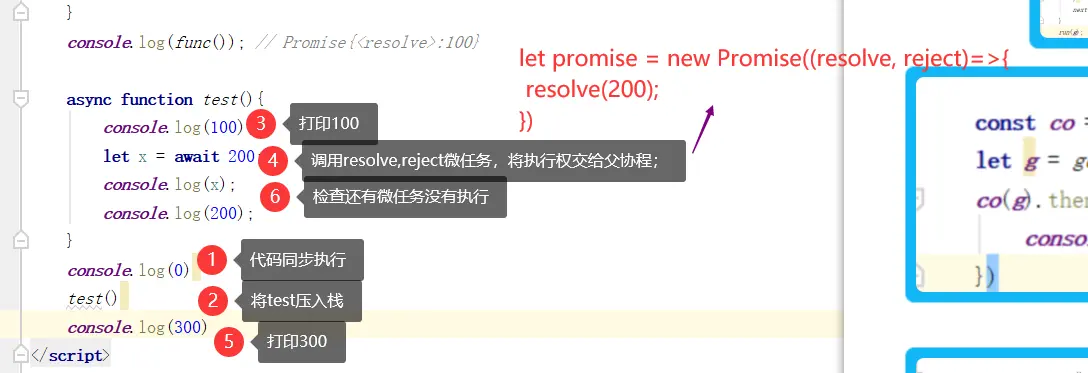 - 在异步操作结束后,会调用resolve方法;或执行中途出错,则调用reject方法。这两者都是作为微任务进入到EventLoop中。