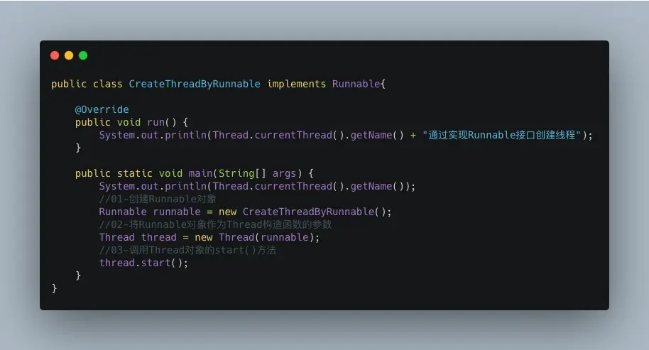 - 第一种创建线程的方法中01和02注意点适用于此处;