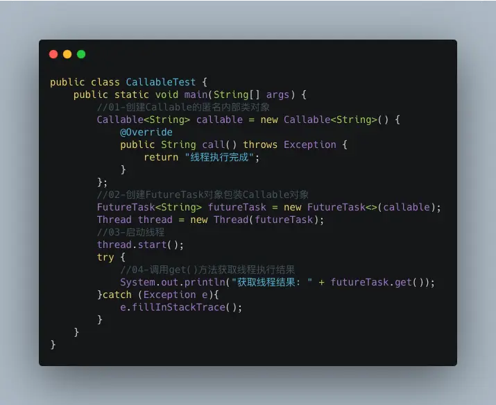 因为Future类无法直接配合Callable使用,所以Java提供了FutureTask类来配合Callable完成创建线程的任务: